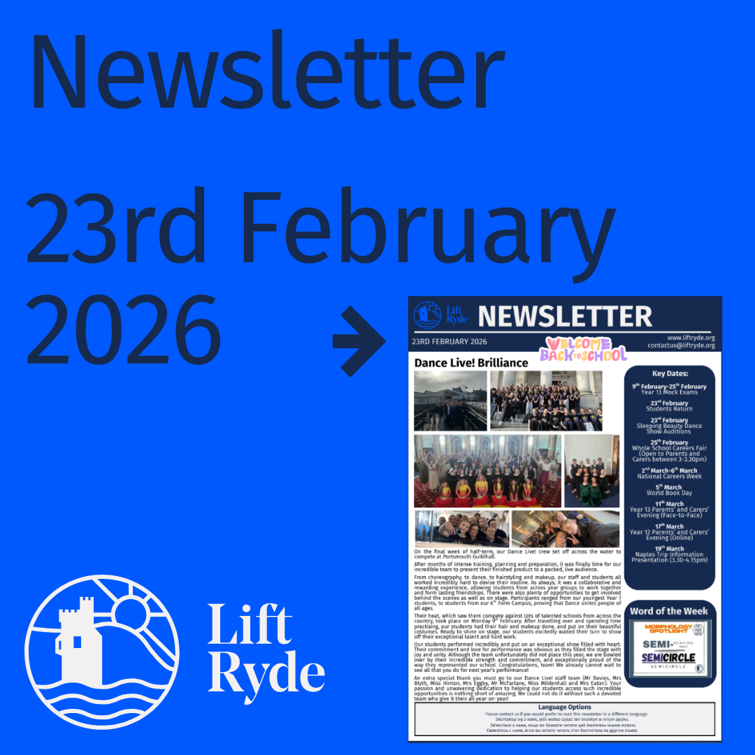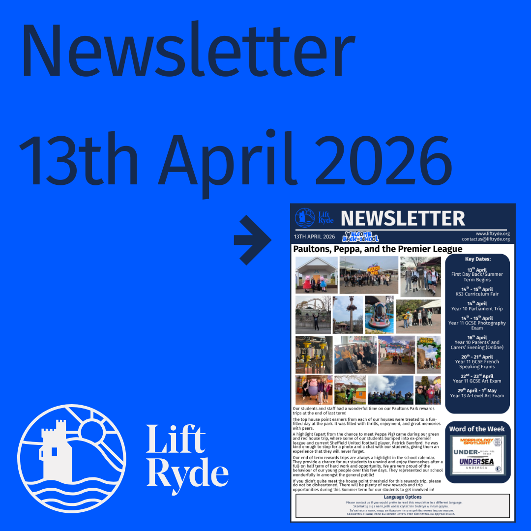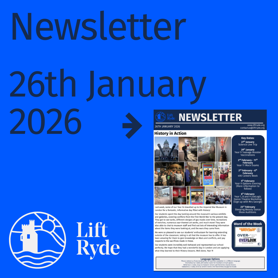 As many of you know, the community of Ryde is very special to me. Growing up in Ryde, attending Ryde High School as a pupil and now as a parent of a child at Lift Ryde it’s an honour and a privilege to be leading this wonderful school into the next exciting phase of its journey.