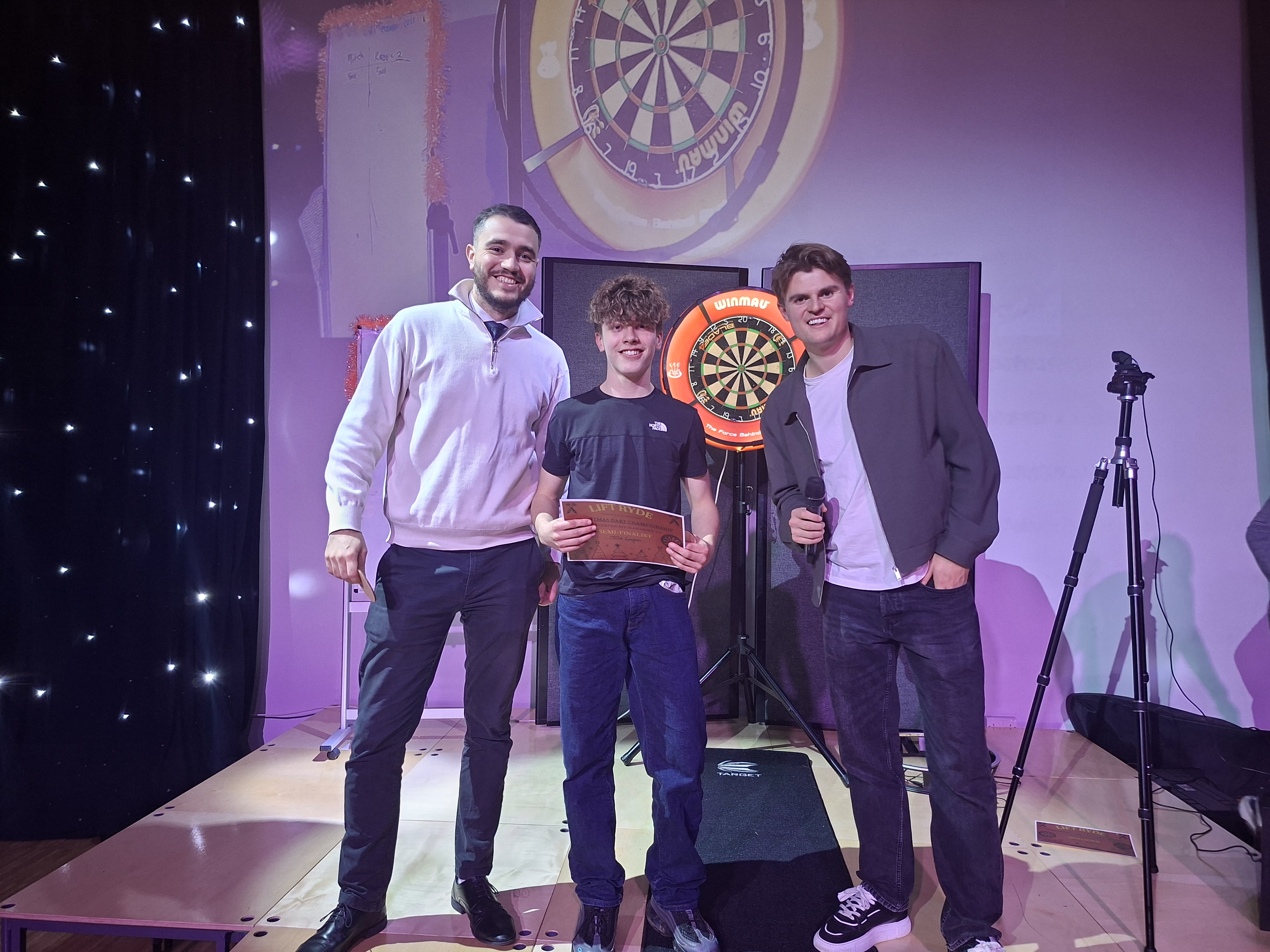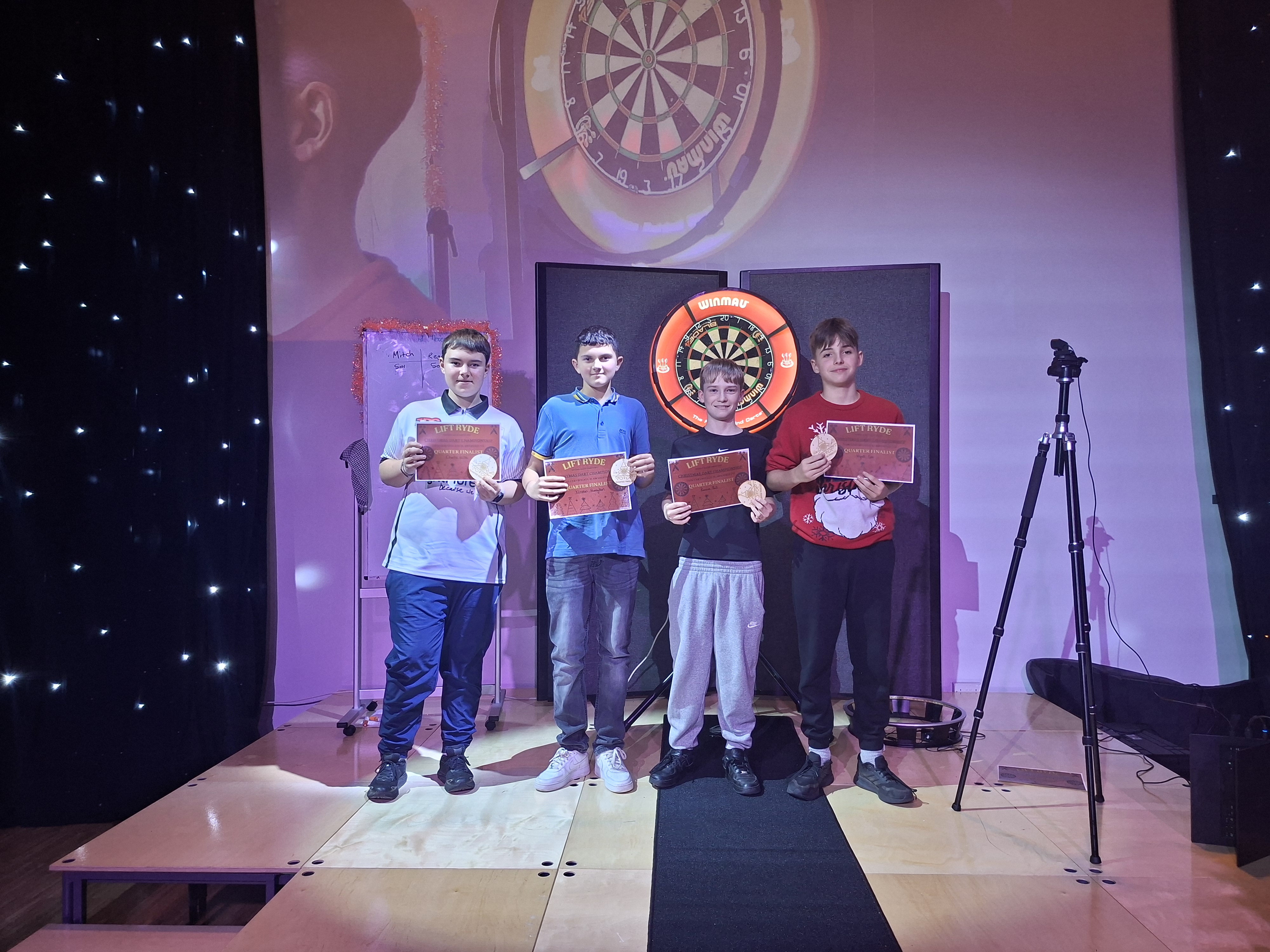 90 finish in two darts, Jenson H hitting a 140, and Ronnie B with two 180 scares. As the competition progressed into the quarter-finals, so did the standards these students were producing. Charlie W, Ronnie B and Mitchell H hit 140, alongside two from Reggie W. All students performed brilliantly on stage, but only 4 could make it
