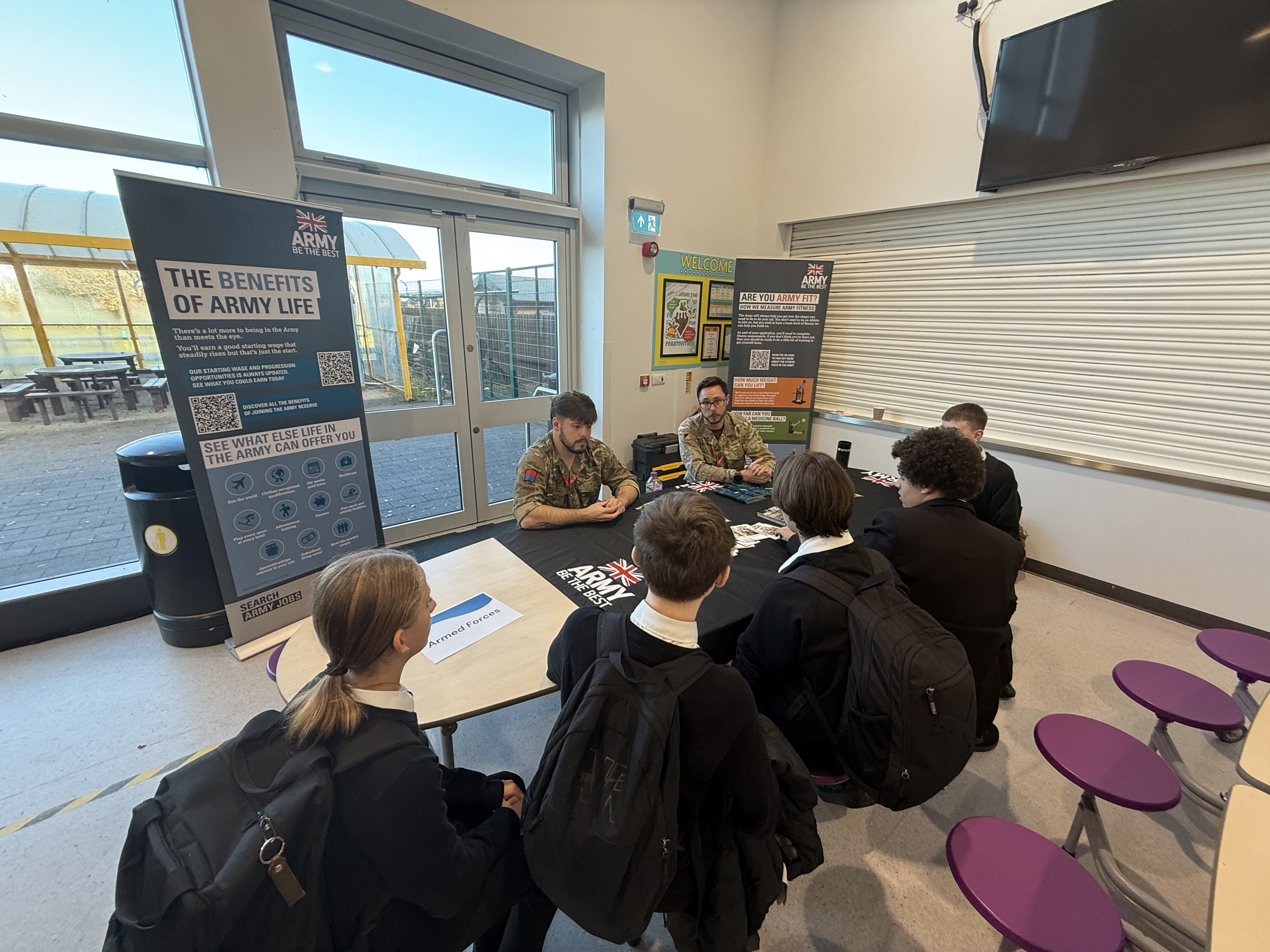 The event’s ‘speed networking’ style meant that our students had a certain amount of time at each stall to learn all about each company or organisation. Visitors ranged from the NHS, to the Garlic Farm, to the Armed Forces, and even some four-legged friends!