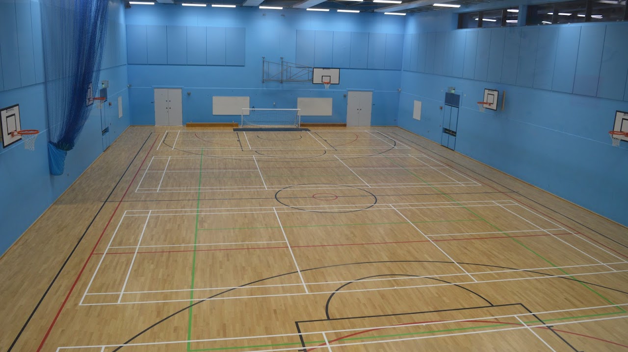 An impressive indoor Sports Hall (33m x 18m), with Olympic standard flooring marked out with badminton courts (x4), a netball court (x1), a football pitch (x1) and basketball courts (x2). Changing rooms with showers are accessible too.